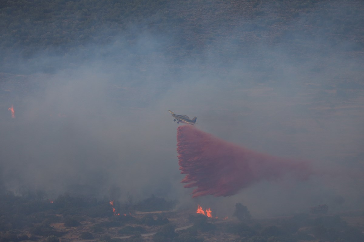 İzmir Orman Bölge Müdürlüğüne ait 4 uçak, 6 helikopter, 30 arazöz, 6 dozer ile İzmir Büyükşehir Belediyesine ait itfaiye araçlarıyla yangına müdahale ediliyor.