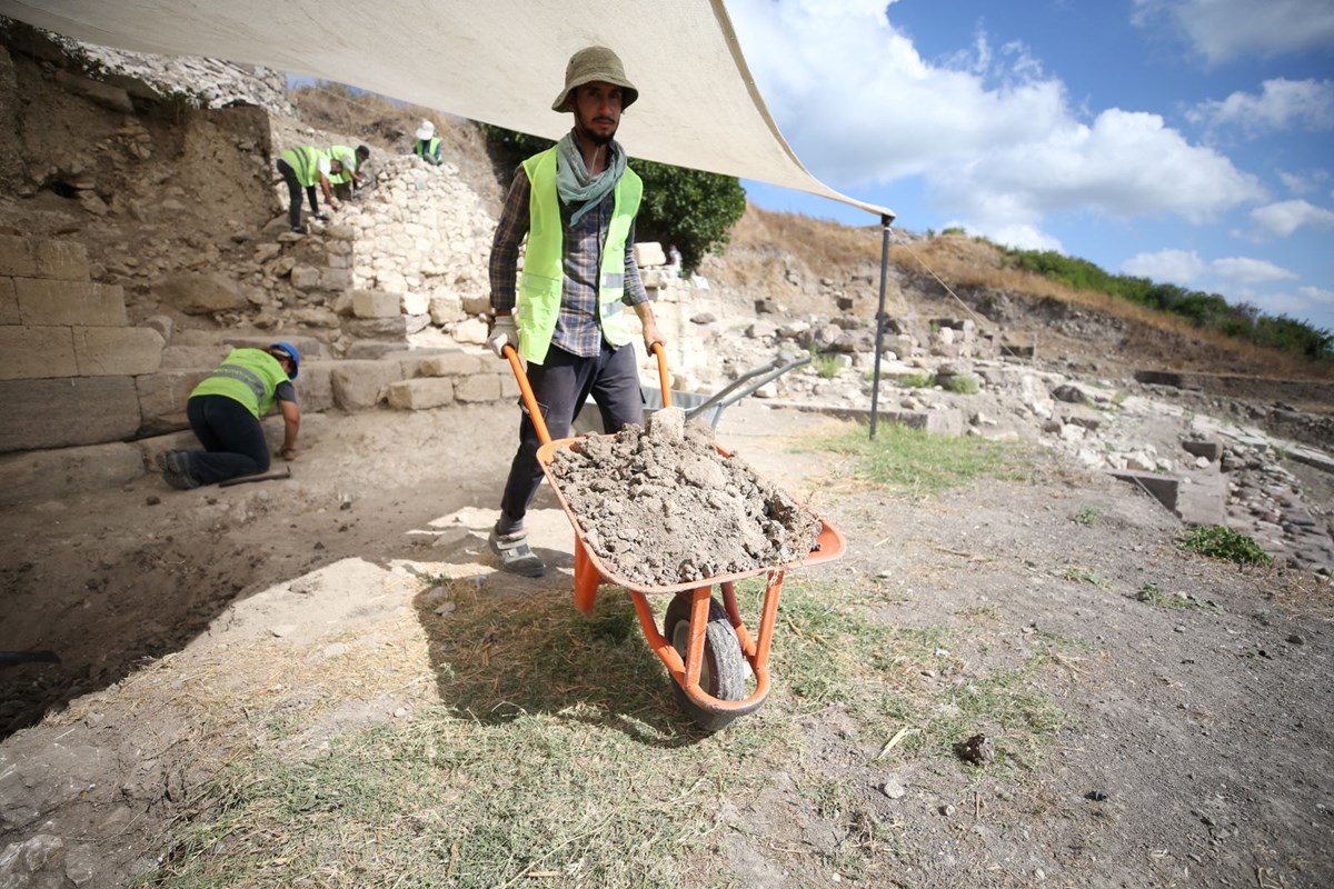 Daskyleion Antik Kenti’nde geçmişi milattan önce 3000’li yıllara dayanan Ergili Mahallesi’ndeki antik kentte 1954’te başlatılan kazılar, Prof. Dr. Kaan İren başkanlığında devam ediyor.Bu yıl 28 Haziran’da başlayan kazılar, Kültür ve Turizm Bakanlığı, Balıkesir Valiliği, Büyükşehir Belediyesi, Bandırma ve Manyas belediyeleri, Muğla Sıtkı Koçman Üniversitesi ve Bandırma Çelebi Liman İşletmesi firmasının desteğiyle sürüyor.Kazı çalışmaları kapsamında kentin 4,5 metre yüksekliğe sahip surları üzerine yoğunlaşıldı. Görselliğiyle yerli ve yabancı tatilcilerin ilgisini çeken surların, bölge turizmine katkı sağlaması hedefleniyor.“GORDİON’DAKİ DUVARLARLA ÇOK BÜYÜK BENZERLİKLER OLDUĞUNU GÖRÜYORUZ” Kazı Heyeti Başkanı, Muğla Sıtkı Koçman Üniversitesi Arkeoloji Bölümü Öğretim Üyesi Prof. Dr. Kaan İren, surların ortaya çıkarılmasıyla Daskyleion’a turizm için biraz daha görsellik kazandırmak istediklerini söyledi. İren, milattan önce 7. yüzyılda yapımına başlanılan surların örgüsünün zamanla farklılık gösterdiğini belirterek, “Duvar örgü tekniği zamanla biraz daha farklılaşıyor. Daha itinalı hale geliyor, bunun dışında kalan kısımlarda ise daha çok Orta Anadolu’da Friglerin başkenti olan Gordion’daki duvarlarla çok büyük benzerlikler olduğunu görüyoruz. Bu da benzer veya aynı ustaların bu duvarlarda kullanılmış olabileceği fikrini bize getiriyor” diye konuştu.“BU DUVARLAR ORTAYA ÇIKINCA KENTİN GÖRSELLİĞİ ARTACAKTIR” Duvarların, kol gücüyle aydınlığa kavuştuğunu vurgulayan İren, 30 küsur metre uzunluğa ulaşan duvarı toprak altından gün ışığına çıkardıklarını ifade etti. İren, şunları kaydetti: “Bu duvarlar ortaya çıkınca kentin görselliği artacaktır ve insanlar geldiği zaman biraz daha farklı bir gözle kenti göreceklerdir. Tekrar ziyaret etmek isteyip surların yanında fotoğraf çektirmek isteyeceklerdir. Böylelikle bir cazibe merkezi haline geleceğini tahmin ediyoruz. Daskyleion, turizmin bir parçası olma yolunda biraz ötelenmiş sayılabilir. Daskyleion’u Manyas Gölü ile birlikte düşünmek lazım, birisi bir doğal güzellik, diğeri tarihi güzellik, ikisini bir araya getirdiğimiz zaman eşsiz bir birliktelik doğacağını düşünüyorum.”İşte diğer kareler…