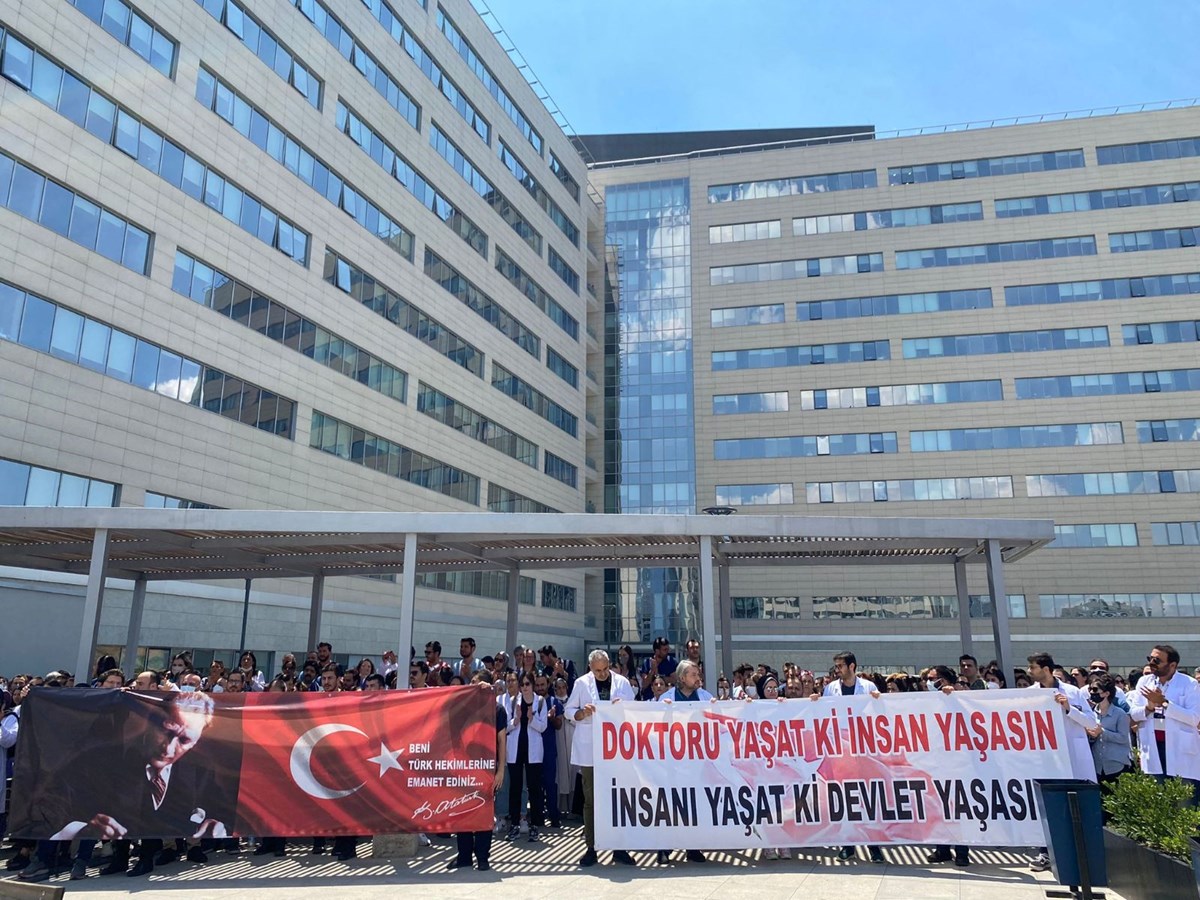 Sağlıkçılar, ”Beni Türk hekimlerine emanet ediniz”, ”Doktoru yaşat ki insan yaşasın, insanı yaşat ki devlet yaşasın”, ”Hekimlerimiz katlediliyor” yazılı pankartlar açtı. Grup, “Katil kim?”, “İyi ki Türk hekimiyim”, “Sağlıkta şiddete hayır” sloganları attı. Grup, basın açıklamasının ardından Sağlık Bakanlığı’na yürüdü.