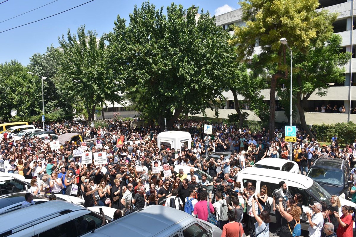 İzmir’de de İl Sağlık Müdürlüğü’nün önündeki caddeyi ulaşıma kapatan binlerce sağlık çalışanı, sağlıkta şiddetin son bulmasını istedi ve valilik binasına doğru yürüdü.