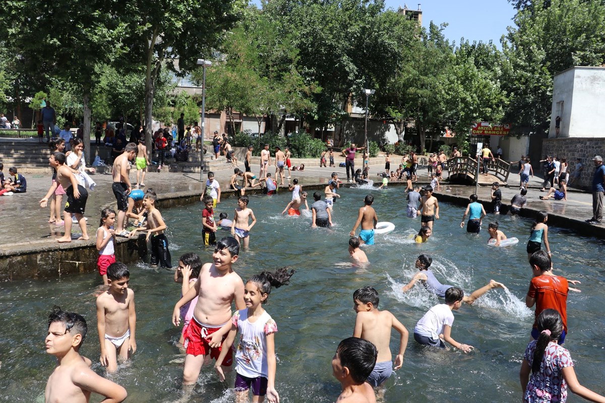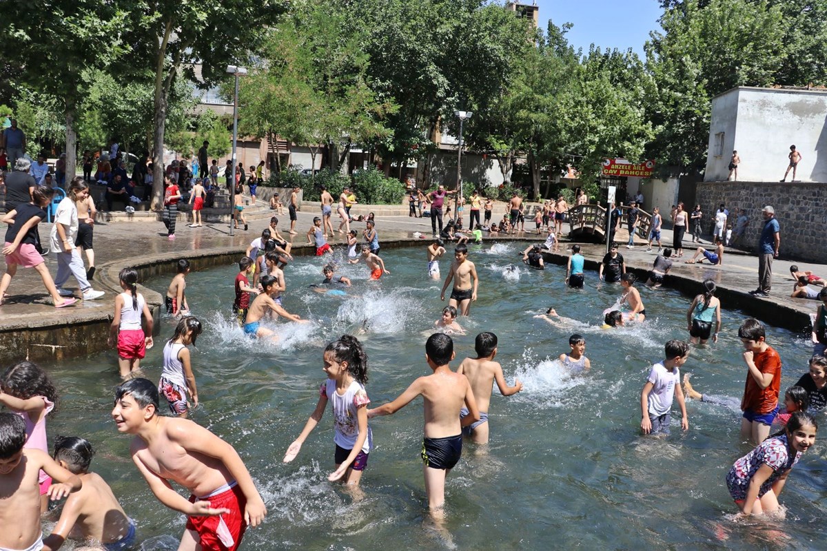 Güneydoğu Anadolu Bölgesi’nde günlerdir 40 derecenin üzerinde seyreden hava sıcaklığı halkı bunalttı. Kent merkezlerinde önceki günlere göre trafik yoğunluğu az olurken, sıcaktan bunalan çocuklar kendilerini süs havuzlarına attı, yetişkinler de park ve bahçelerde gölgelik alanları tercih etti.