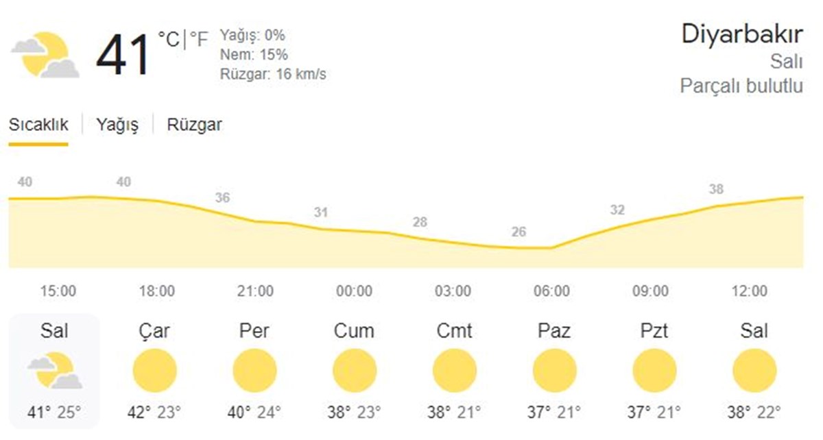 Güneydoğu Anadolu Bölgesi’nde günlerdir etkili olan 40 derecenin üzerindeki sıcaklık, insanları bunalttı. Diyarbakır, Mardin’in Nusaybin ilçesi, Batman ve Şırnak’ın Silopi ilçelerinde şehir merkezlerindeki trafik yoğunluğu, önceki günlere göre daha düşük oldu.Sıcaklıkla beraber çocuklar serinlemek için süs havuzlarına girerken, evlerinde duramayıp dışarı çıkanlar da park ve bahçelerdeki gölgelik alanları tercih etti.Bölge esnafı, araçların altına sığınan sokak hayvanlarına su ve yemek vererek hem açlıklarını giderdi hem de serinlemelerini sağladı. Batman’da bazı sokak köpeklerinin de süs havuzlarına girdiği görüldü.Şırnak’ın Silopi ilçesinde meteoroloji verilerine göre hava sıcaklığı 44 dereceyi bulurken, yarın 45 derece olacağı tahmin ediliyor.Aşırı sıcaklar yüzünden evlerinde çıkmayanlar dinlenmeye çekilirken, ilçenin en işlek caddelerinde ise az sayıda insan görüldü. 2. Cadde üzerinde gölge de şapkası ile serinlemeye çalışan 75 yaşındaki Mustafa Yağan, “Silopi’de bu seneki gibi sıcak görmedim. Yaşım 75. Yandık burada” diye konuştu.Kuaför Mustafa Buluş da müşterilerinin genelde ikindiden sonra gelmeyi tercih ettiğini belirterek, “Havalar çok sıcak olduğundan dolayı müşteriler fazla gelmiyor. Neredeyse müşteri yok. Bizim buranın sıcaklığı çekilmeyecek bir derecede” ifadelerini kullandı.Diyarbakır’da da günlerdir etkili olan 40 derecenin üzerinde sıcaklıkla, trafikteki yoğunlukta önceki günlere göre düşüş yaşandı.Çocuklar Sur ilçesinde bulunan Anzele Parkı’ndaki süs havuzunda serinlerken, yetişkinler de gölgelik alanları tercih etti. Turist çeken kentte tarihi mekanların büyük çoğunluğu sıcaklık nedeniyle boş kaldı.Mardin’in Kızıltepe ilçesinden arkadaşlarıyla tarihi On Gözlü Köprü’ye gelerek ağaçların gölgesinde serinlemeye çalışan Selahattin Akikol, “Sıcaktan bunalıp bu serin yere geldik” dedi.Anzele Parkı’ndaki süs havuzunda serinlemeye çalışan Muhammet Ramazan Süslü, “Buraya serinlemek için geliyoruz. Buna rağmen çok sıcaktı. Havuz derin de değil, burada çok güzel bir ortam var” ifadelerini kullandı. Mardin’in Nusaybin ilçesinde de 43 dereceyi bulan sıcaklıkta esnaf Alaattin Aydın, yüksek sıcaktan etkilendiklerini söyledi.