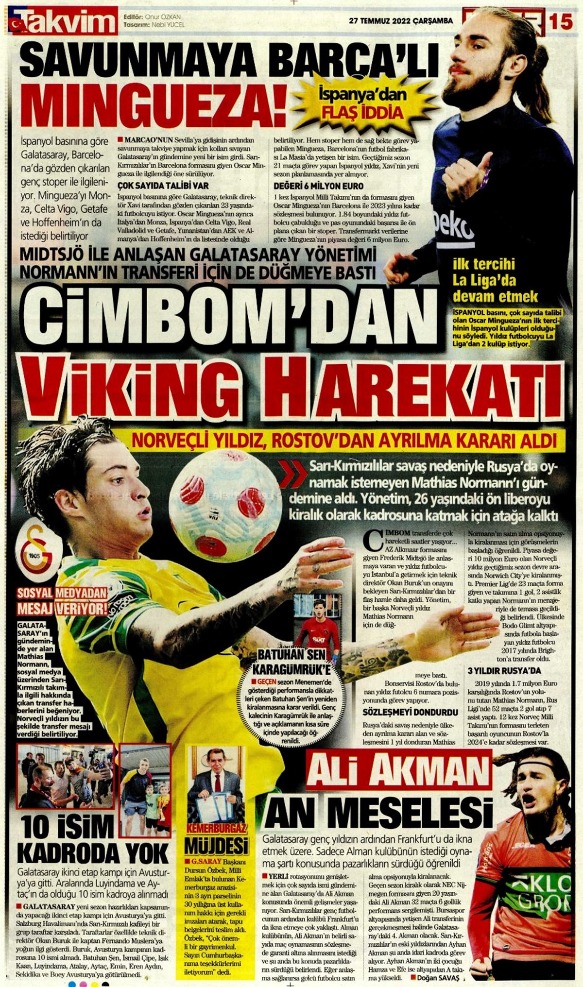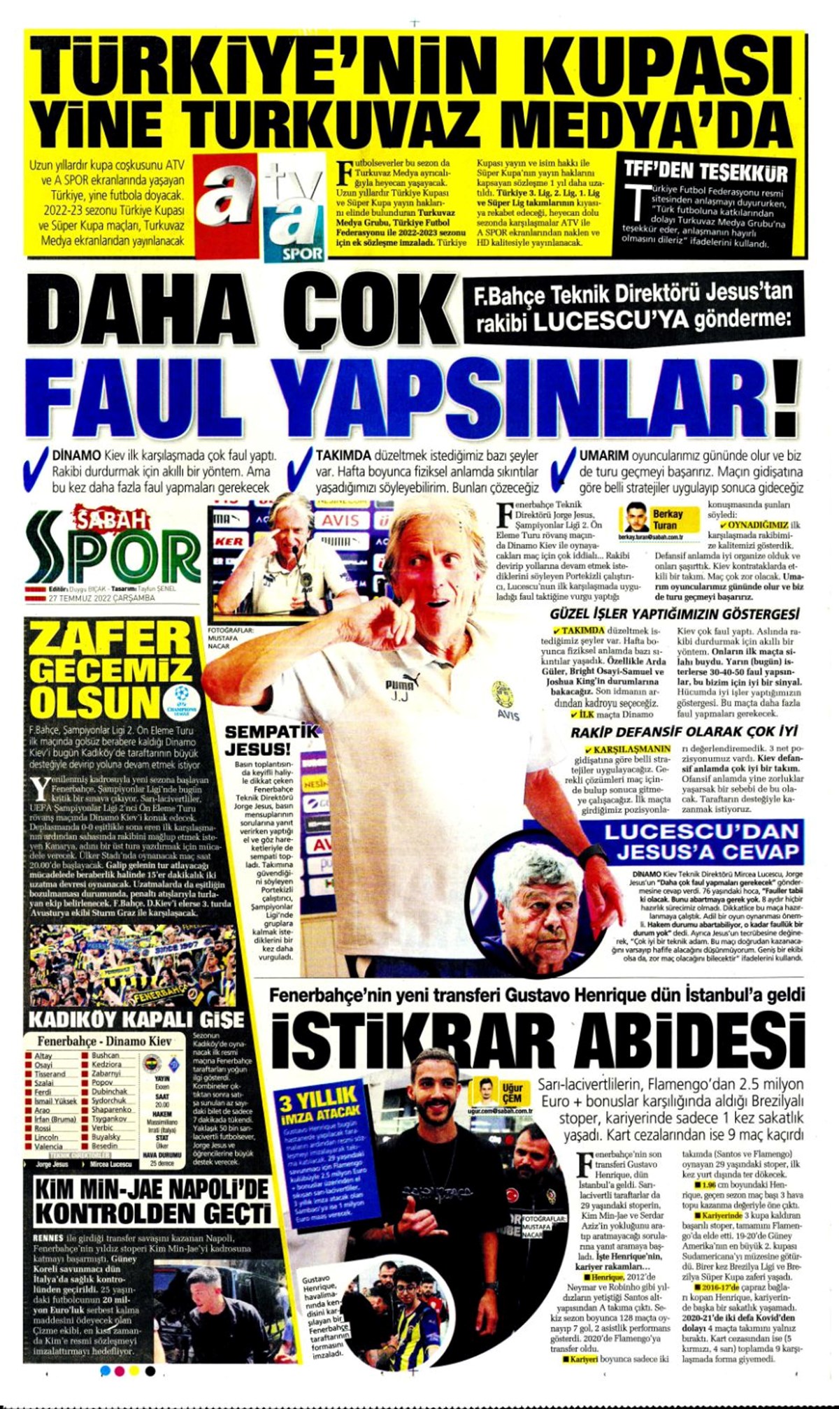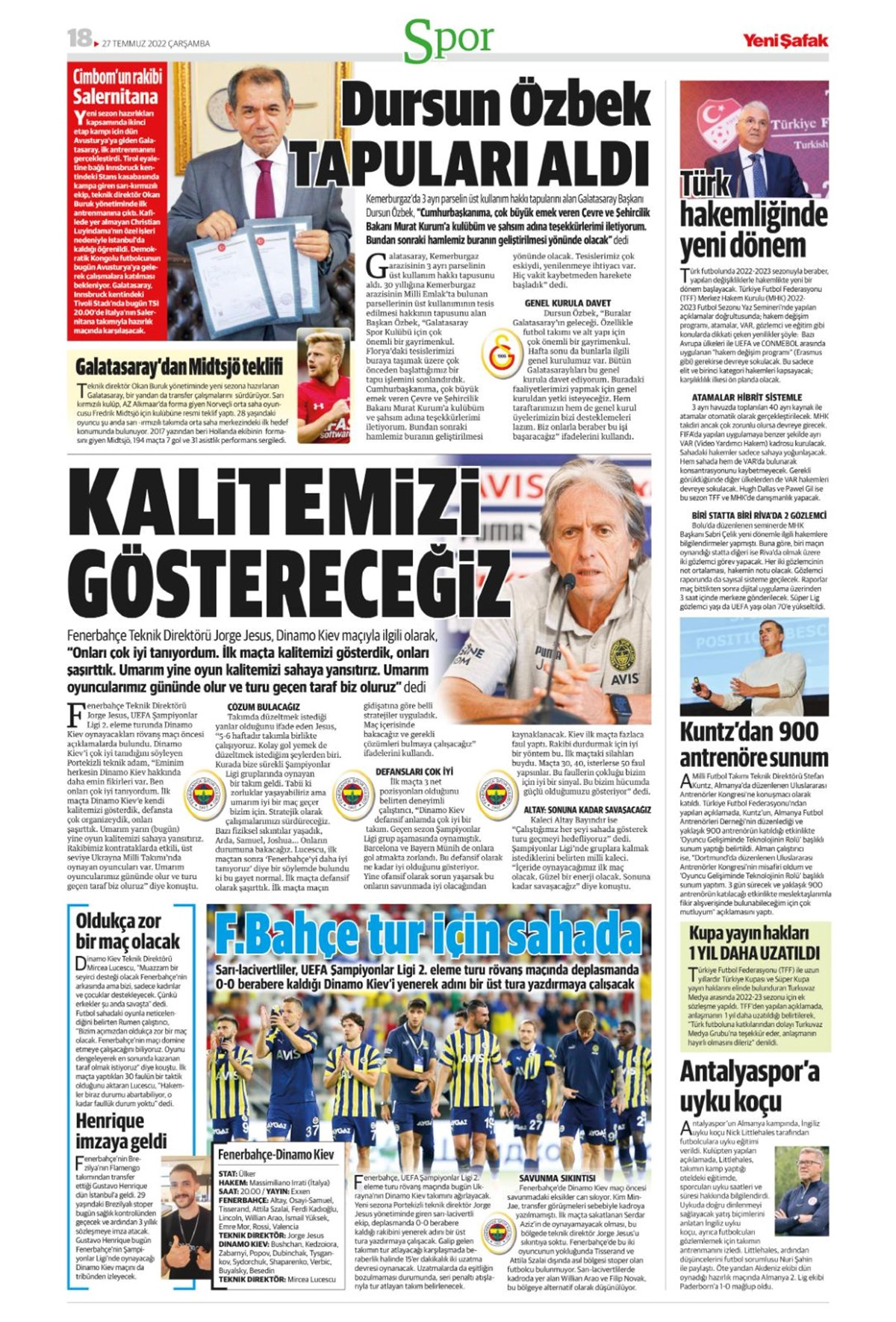Günün spor manşetleri (27 Temmuz 2022)