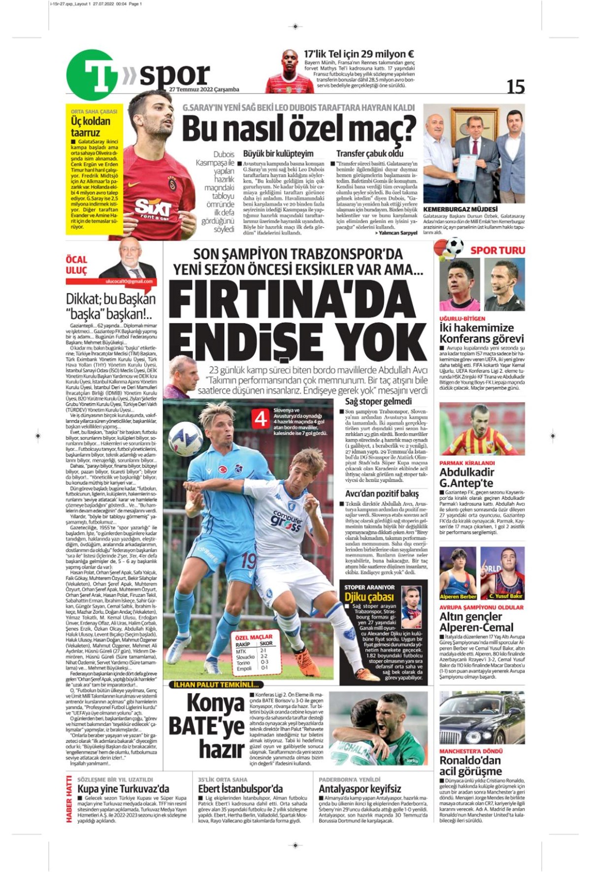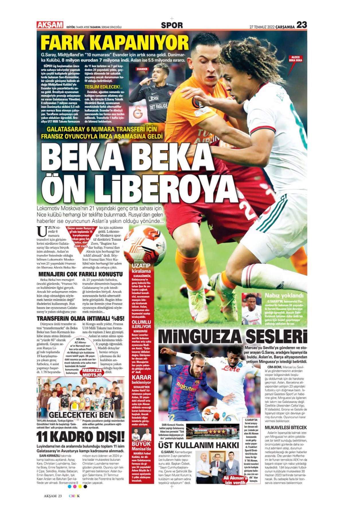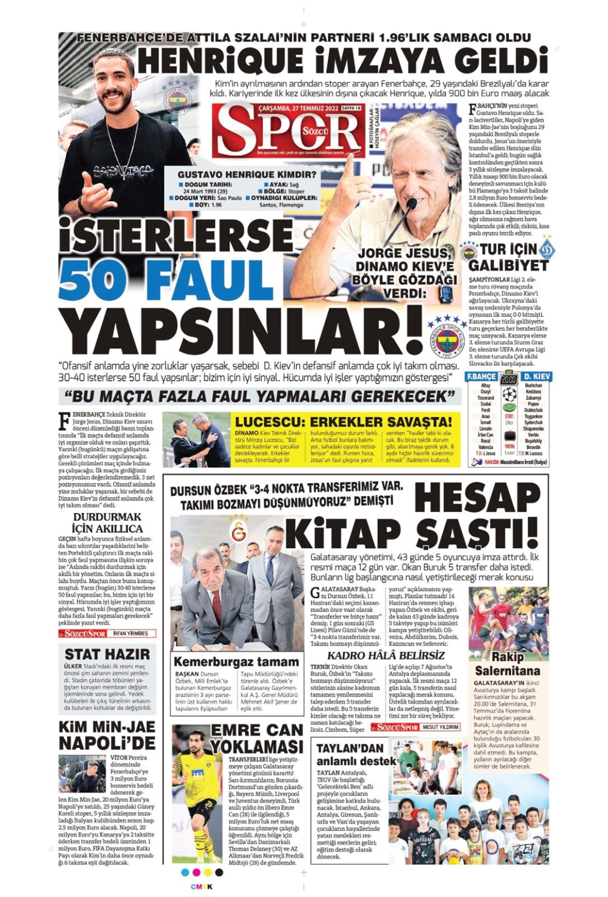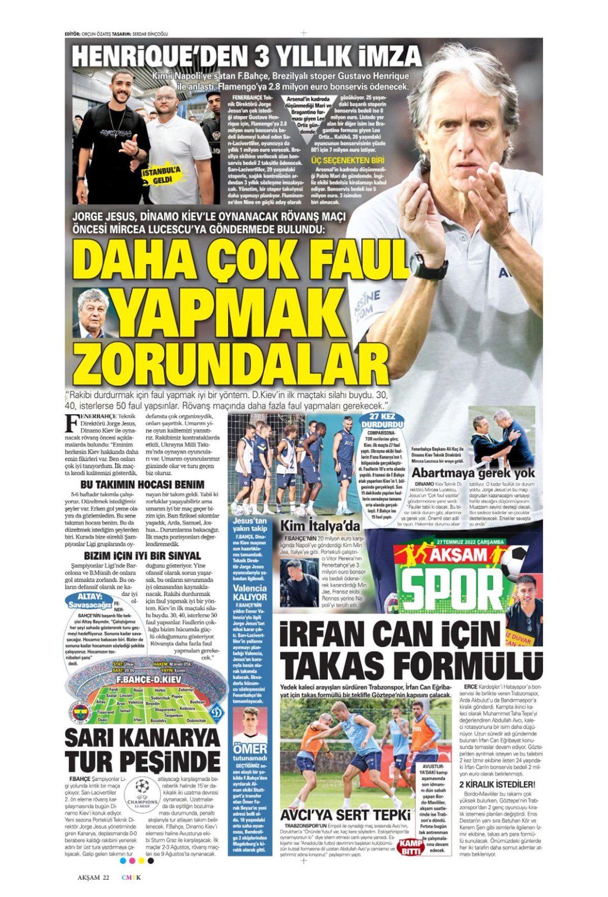 Günün spor manşetleri (27 Temmuz 2022)