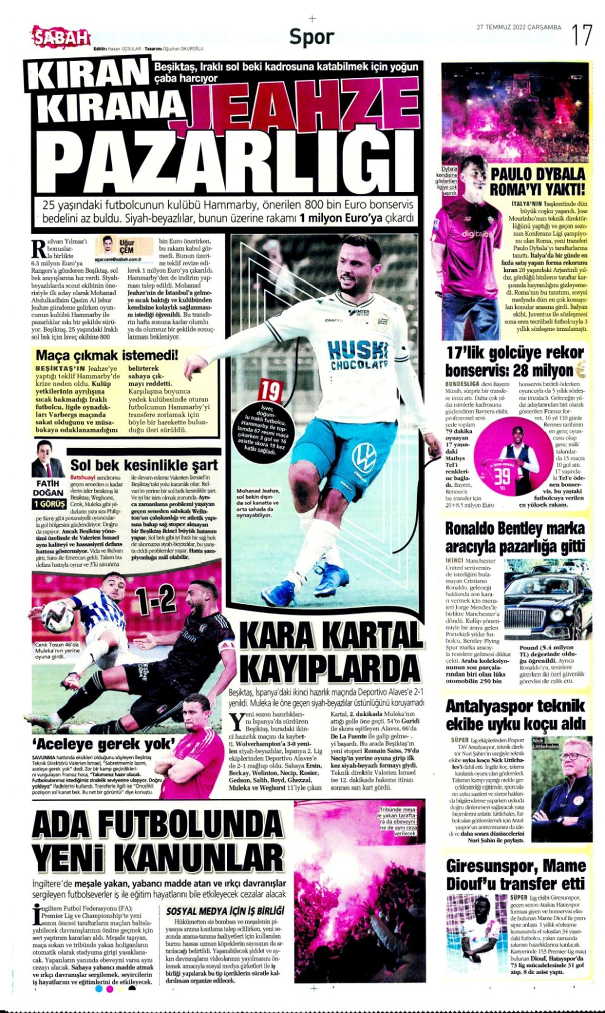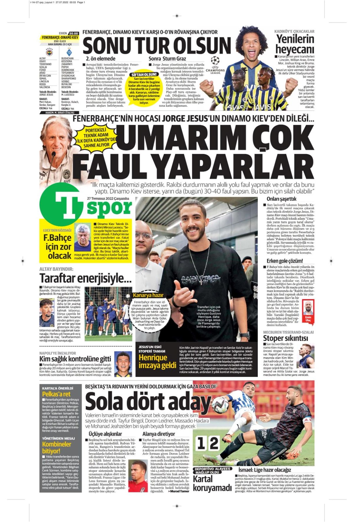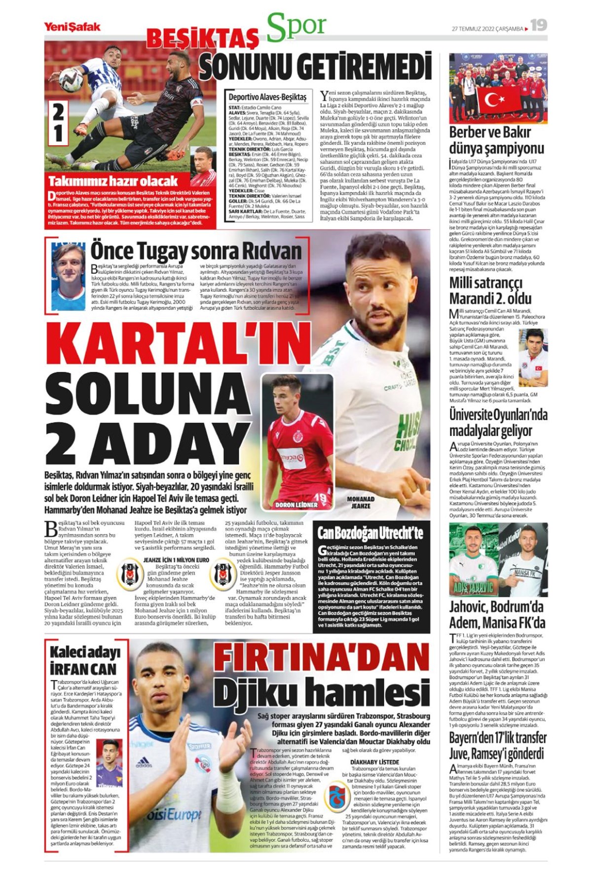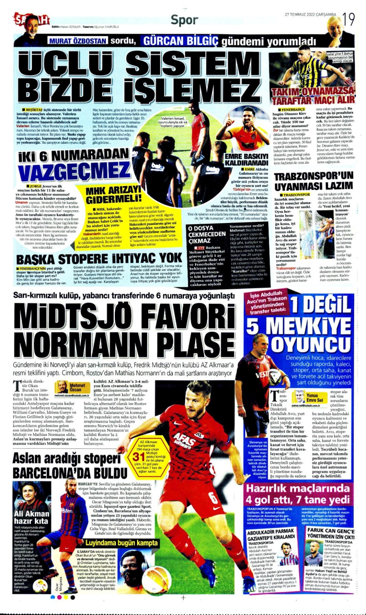 27 Temmuz 2022 gazetelerin spor sayfalarına, Beşiktaş, Fenerbahçe, Galatasaray ve Trabzonspor’un transfer haberlerine, 1 dakikada göz atın.