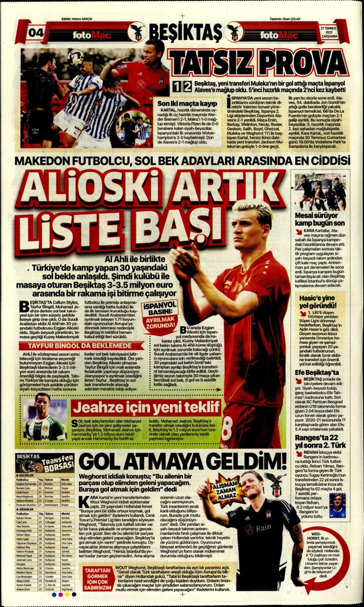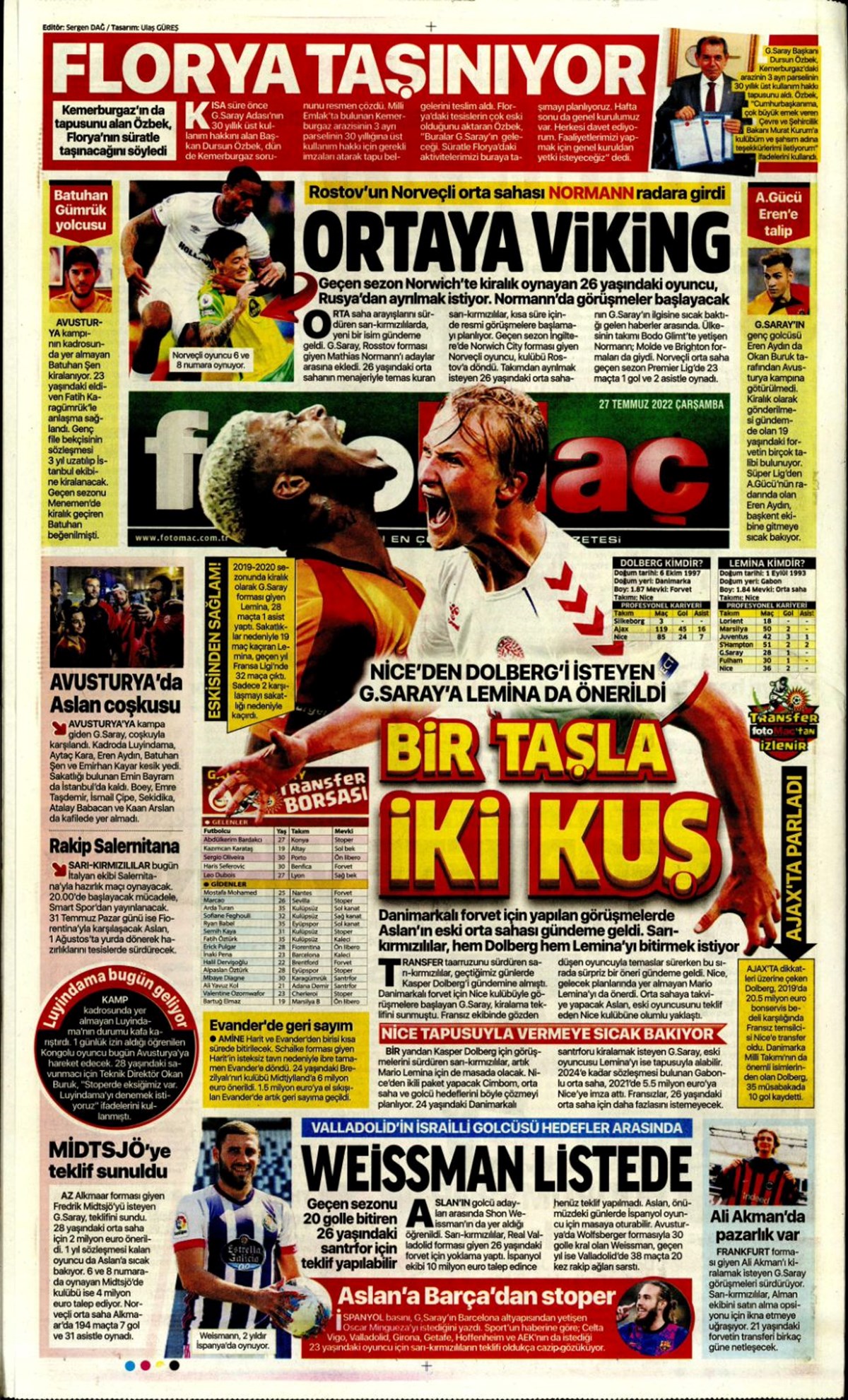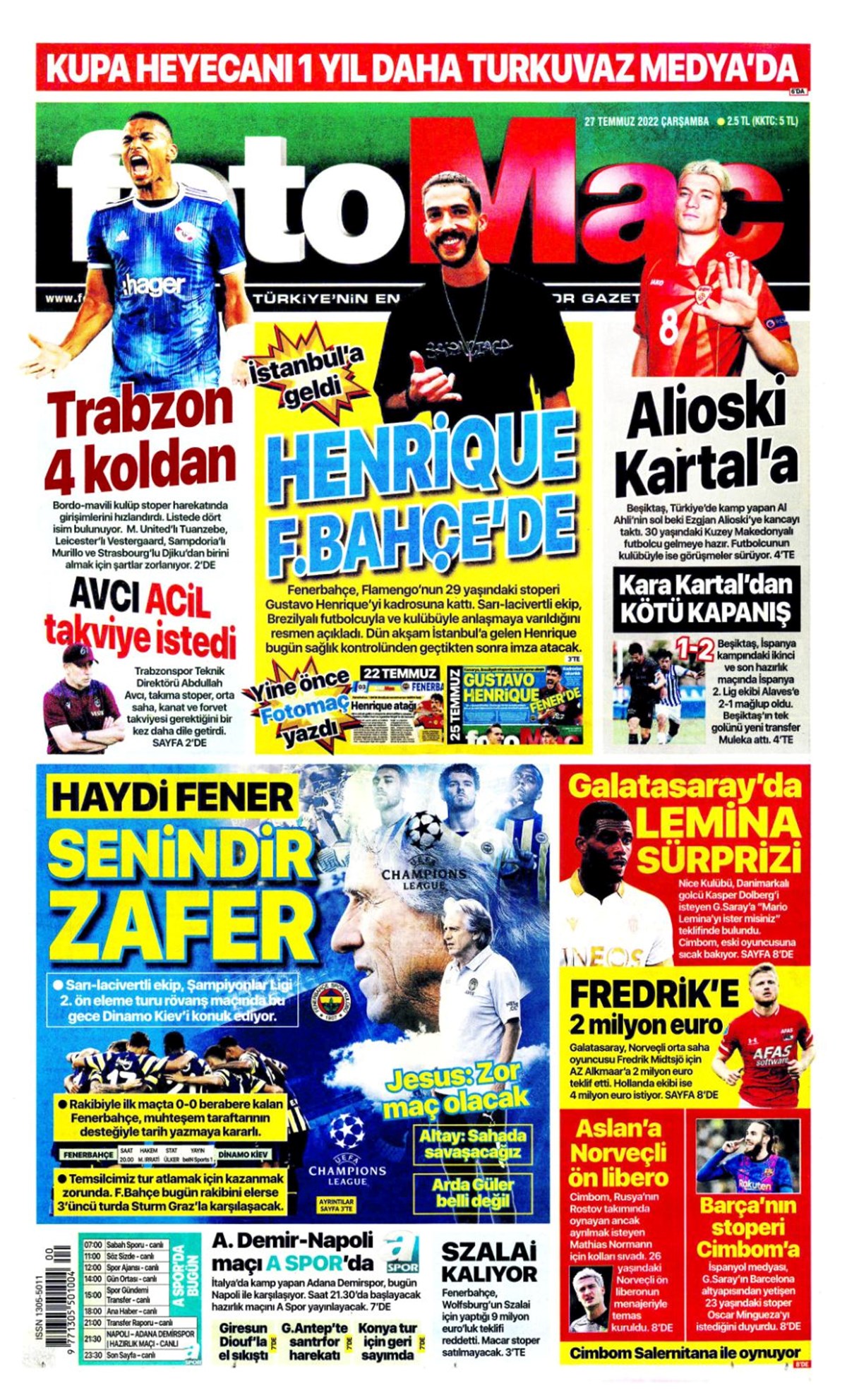 27 Temmuz 2022 gazetelerin spor sayfalarına, Beşiktaş, Fenerbahçe, Galatasaray ve Trabzonspor’un transfer haberlerine, 1 dakikada göz atın.