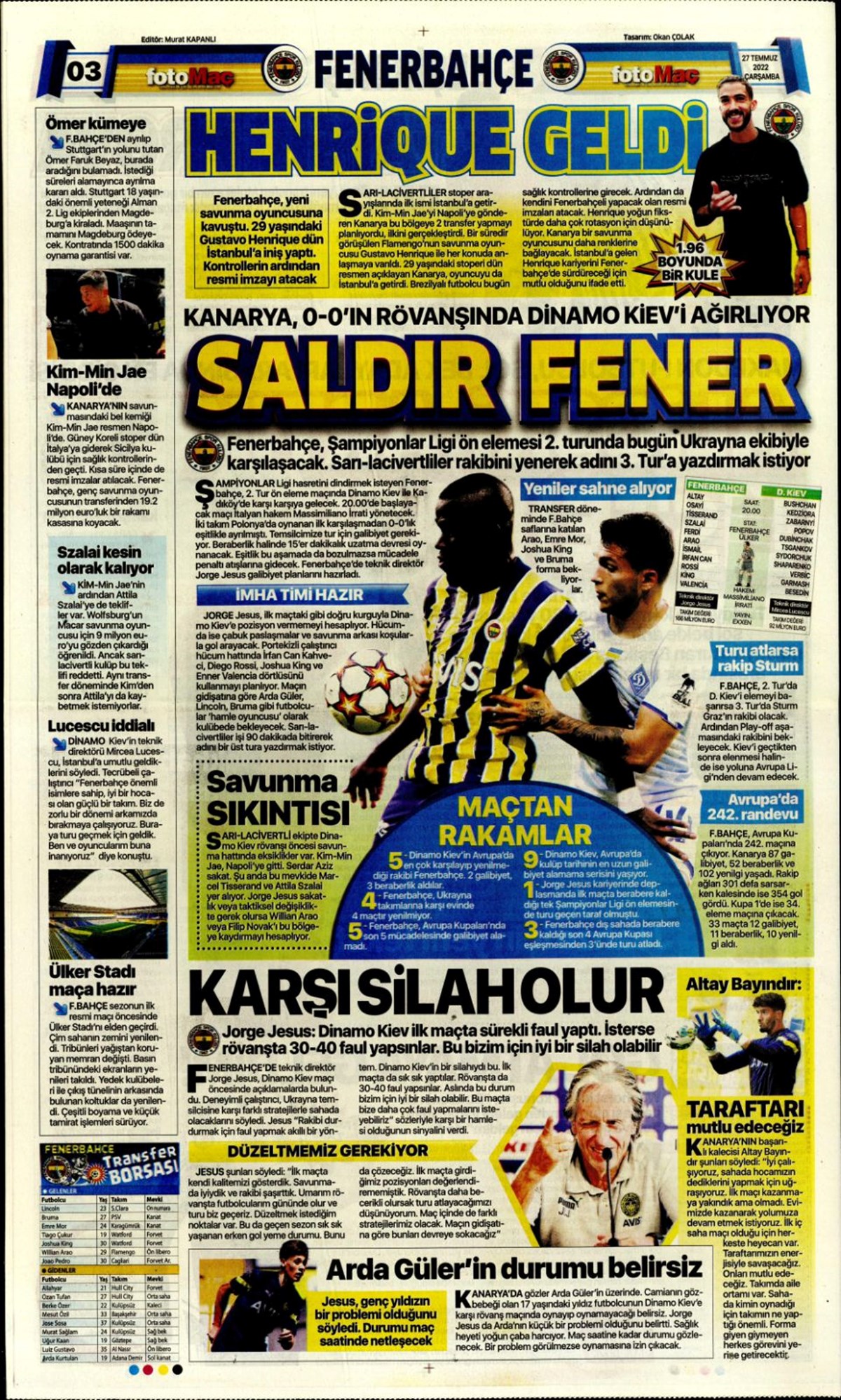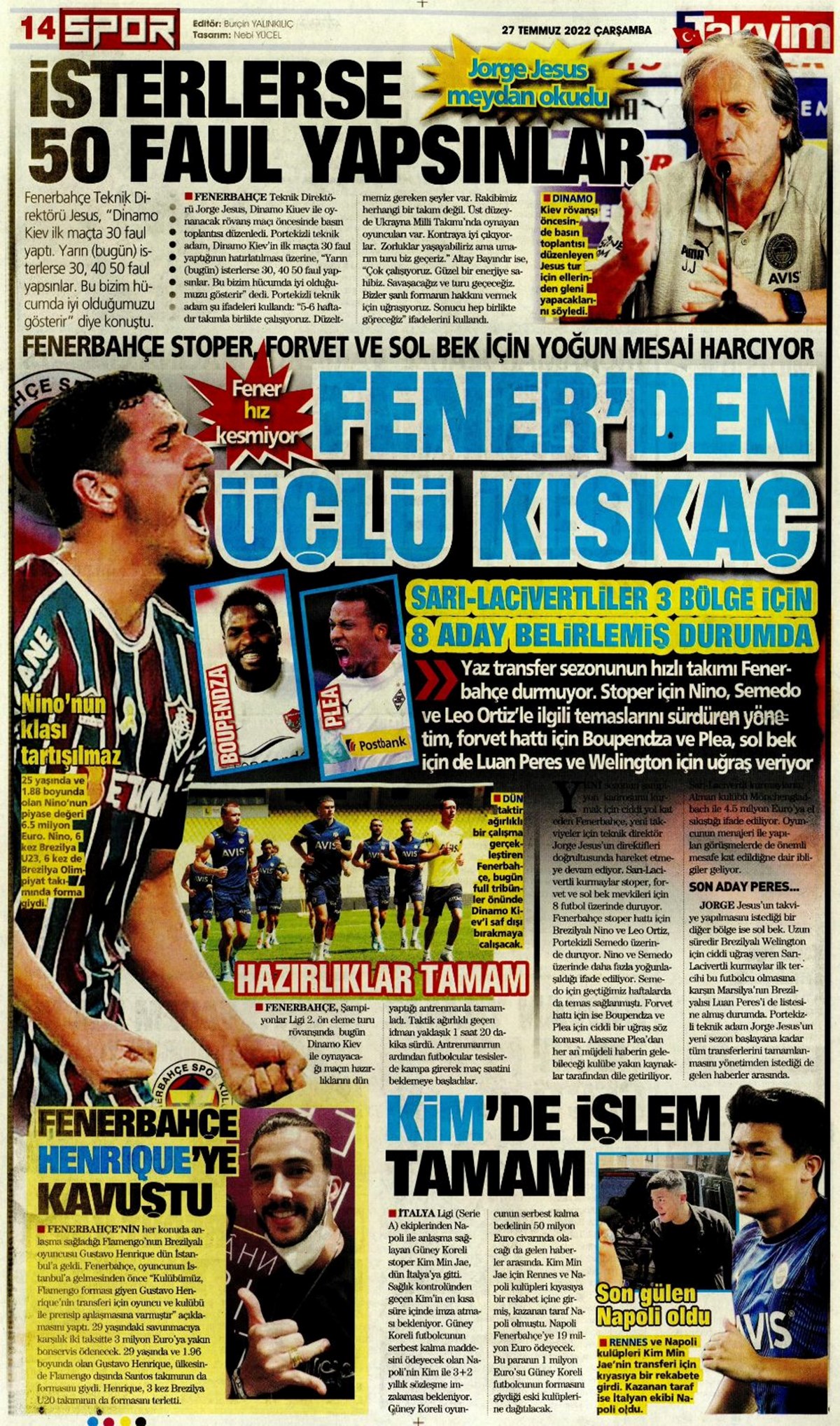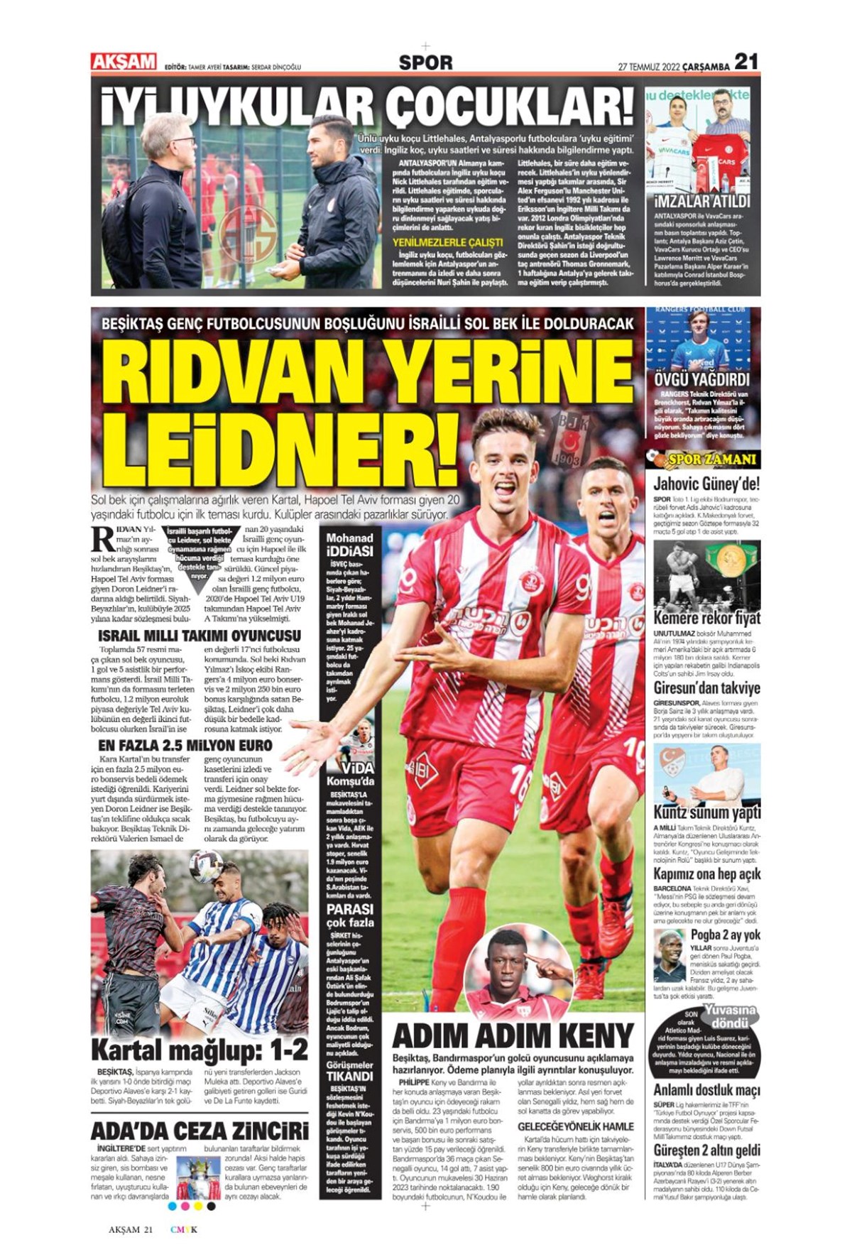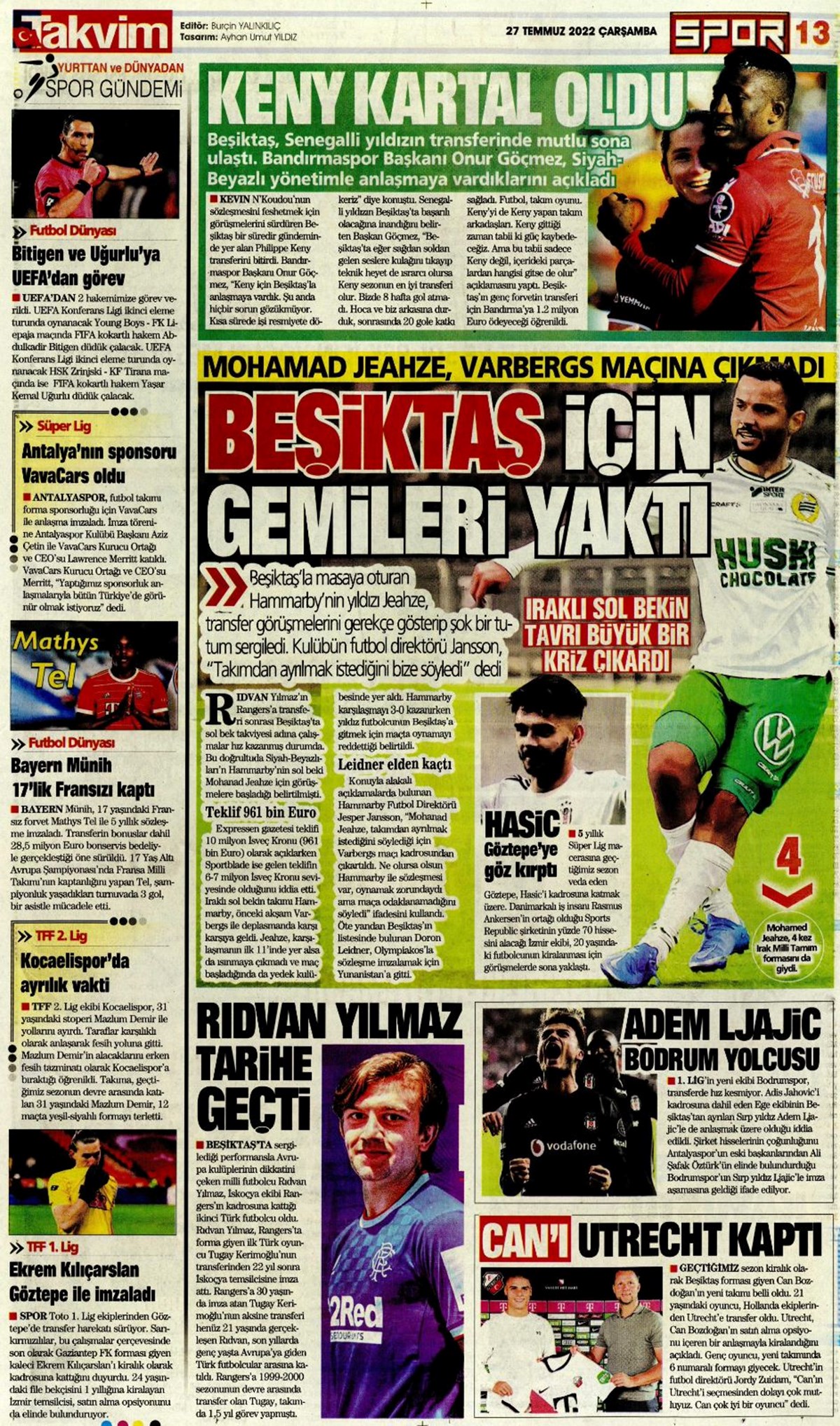 27 Temmuz 2022 gazetelerin spor sayfalarına, Beşiktaş, Fenerbahçe, Galatasaray ve Trabzonspor’un transfer haberlerine, 1 dakikada göz atın.