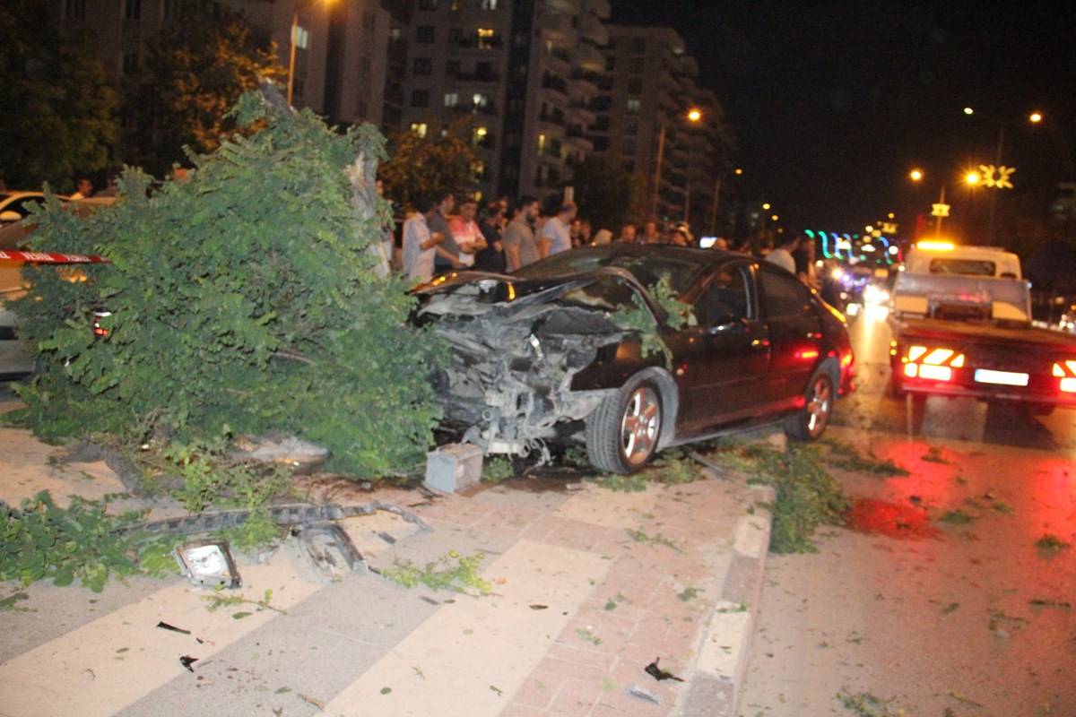 Kontrolden çıkan Seçkin Akın’ın kullandığı otomobil kaldırımı aşarak 5 ağacı devirerek durdu.