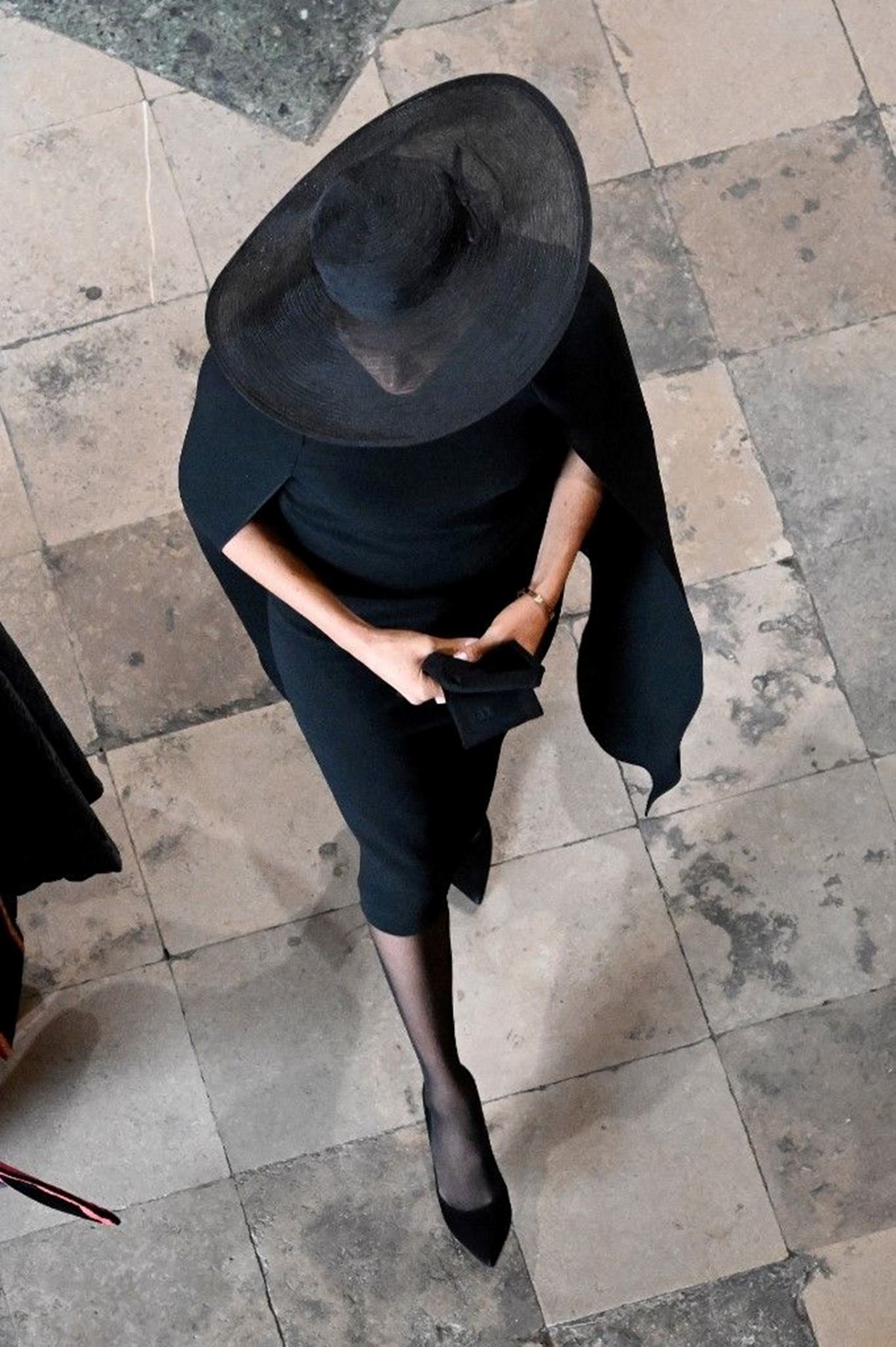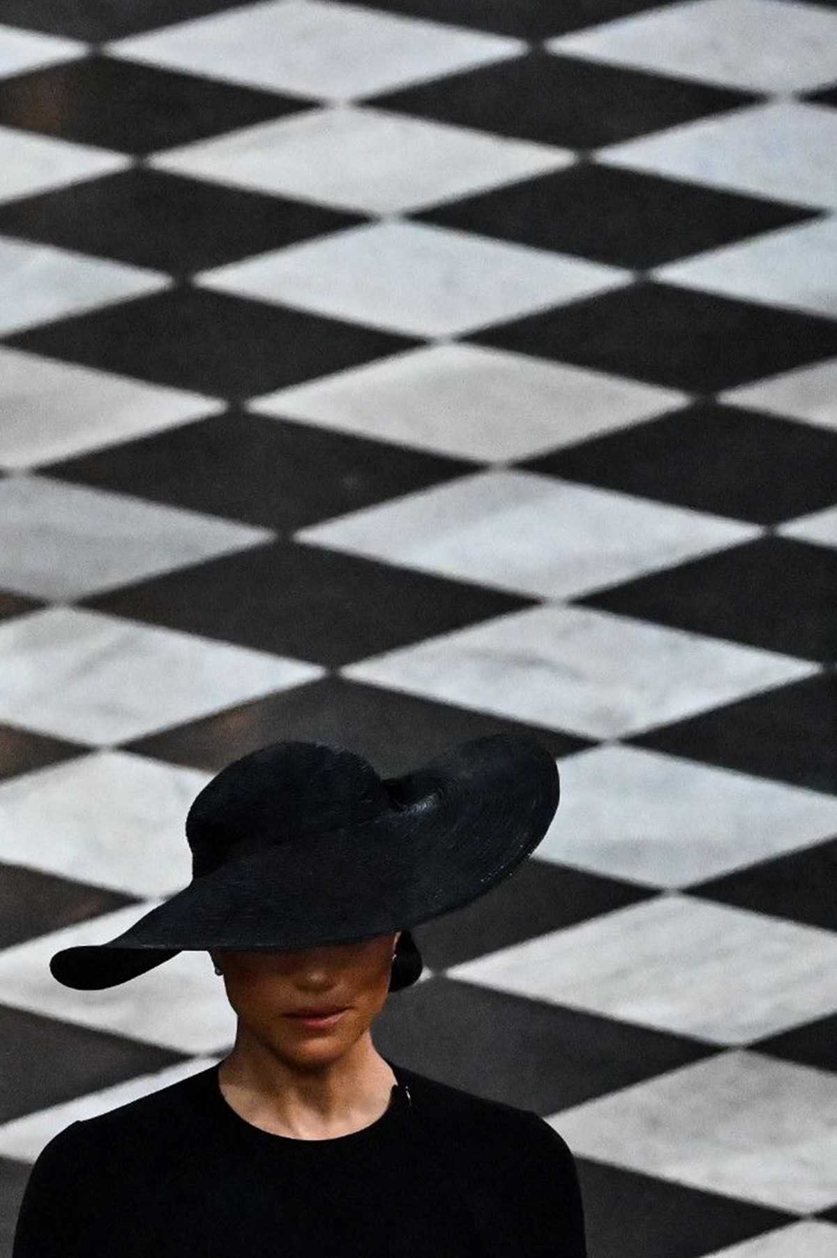 Artık kraliyet mensubu olmayan çift, Westminster Katedrali’ndeki ayinde ikinci sırada yer aldı. Markle, törende, Kraliçe’nin hediyesi olan inci küpeleriyle saygı duruşunda bulundu.